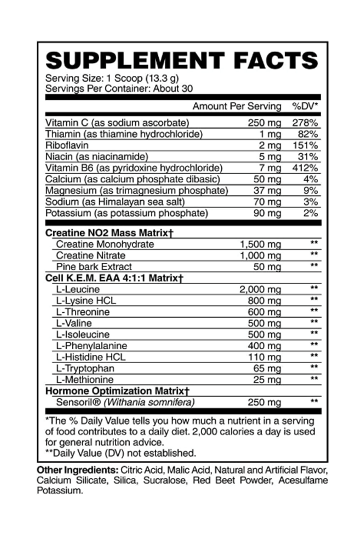 Cell KEM PR'nin hassas/benzersiz formülü, formülatör ve CEO Hany “the Pro Creator” Rambod'un birçok bölüm ve sporda yüzlerce sporcuyu eğitme deneyiminden ve benzeri görülmemiş 20 Olympia şampiyonluğundan doğmuştur. Bu deneyimi kullanan bu yükseltilmiş versiyon, orijinal Cell KEM'de kullanılan aynı 4:1:1 BCAA oranını içerir, ancak ayrıca ek EAA'lar da içerir. Çıtayı daha da yükseltmek için Hany, Cell KEM PR'yi, antrenman sonrası kan akışını ve kaslarınıza besin iletimini en üst düzeye çıkarmak için şimdiye kadar geliştirilmiş diğer tüm antrenman sonrası iyileşme formüllerinden gerçekten ayıran gücü ve dolgunluğu en üst düzeye çıkarmak için NO3T® Kreatin Nitrat'ı da dahil etti.