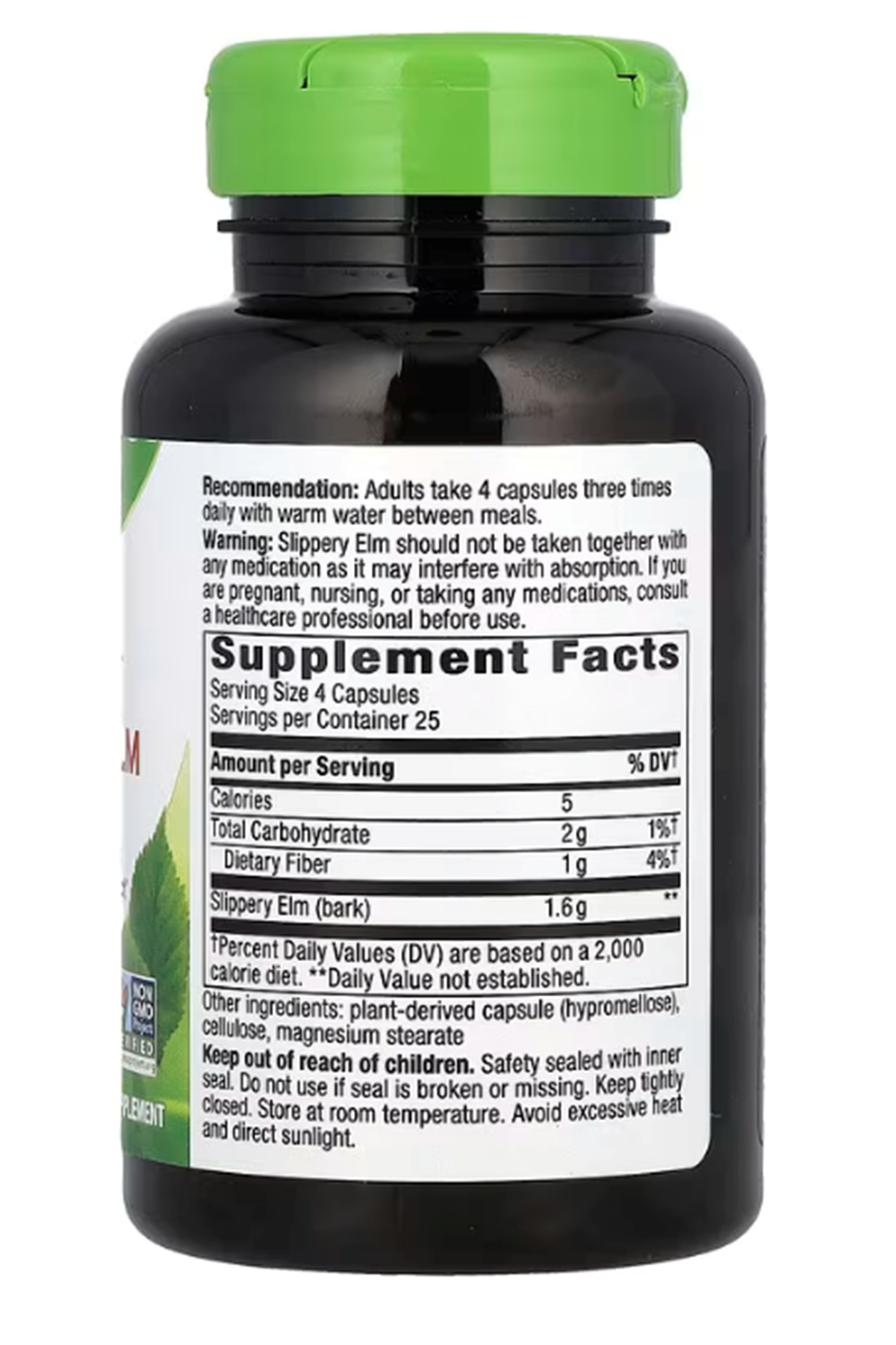 Nature's Way, Slippery Elm Bark, 1,600 mg, 100 Vegan Capsules.Abd Menşei.4135