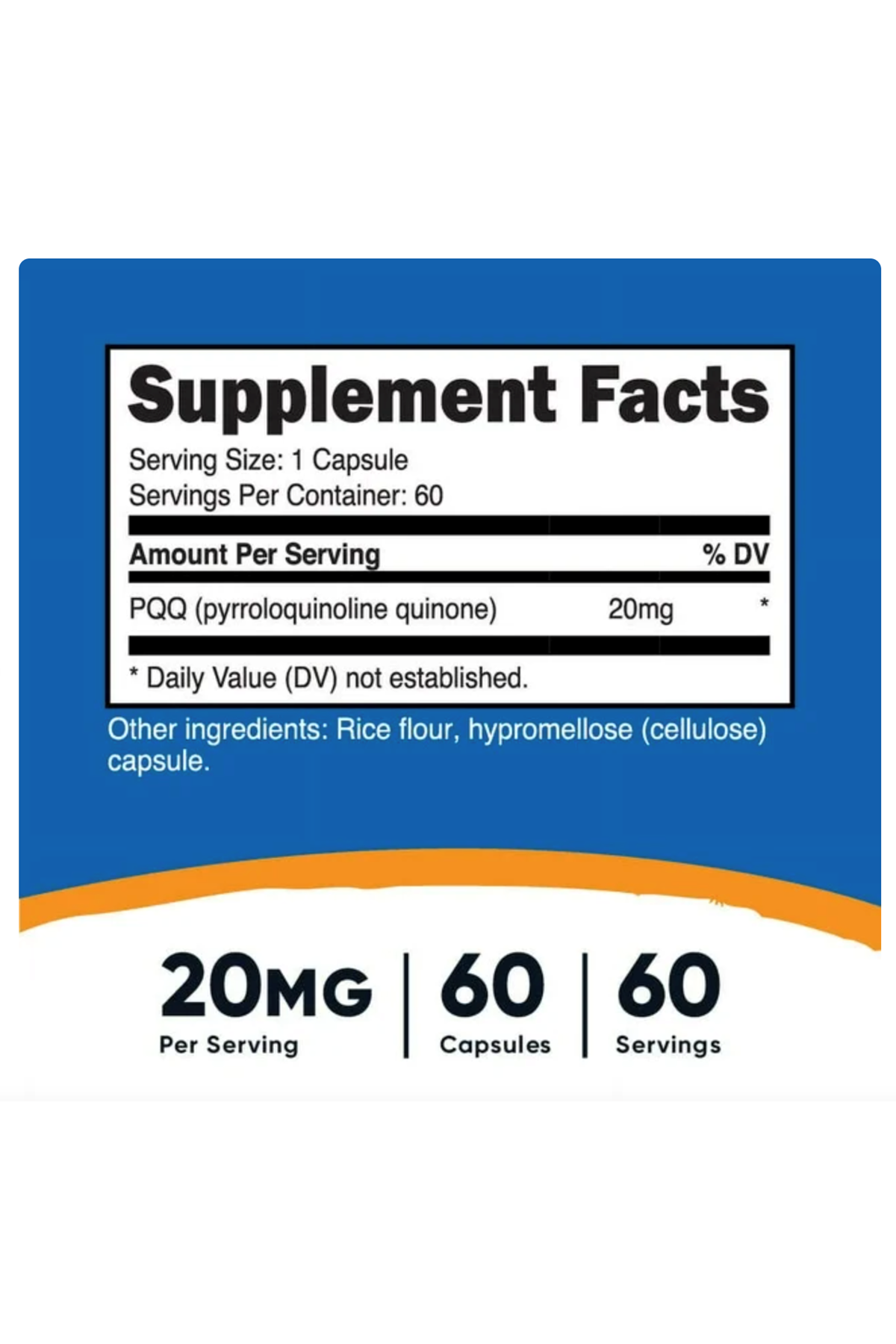 Nutricost PQQ (Pyrroloquinoline Quinone) 20mg, 60 Capsules - Non-GMO, Gluten Free. ABD MENŞEİ.40.